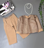 کار مزون دوز سه تیکه جذاب جنس کت چرم جنس شلوار مازراتی جنس تاپ نخی سایز بندی از ۳ سال تا ۸ سال