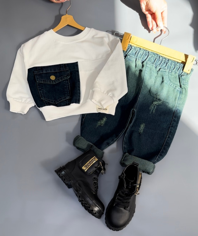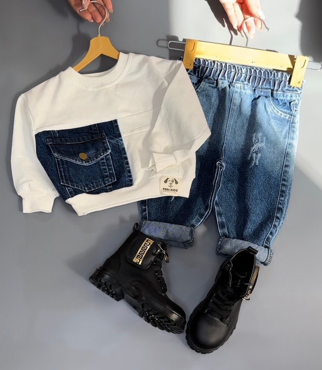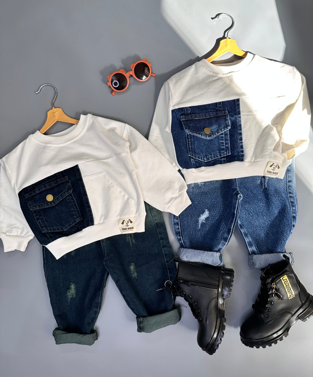 ست بیرونی اسپرت جنس اعلا بلوز نخ پنبه شلوار لی گرم بالا
