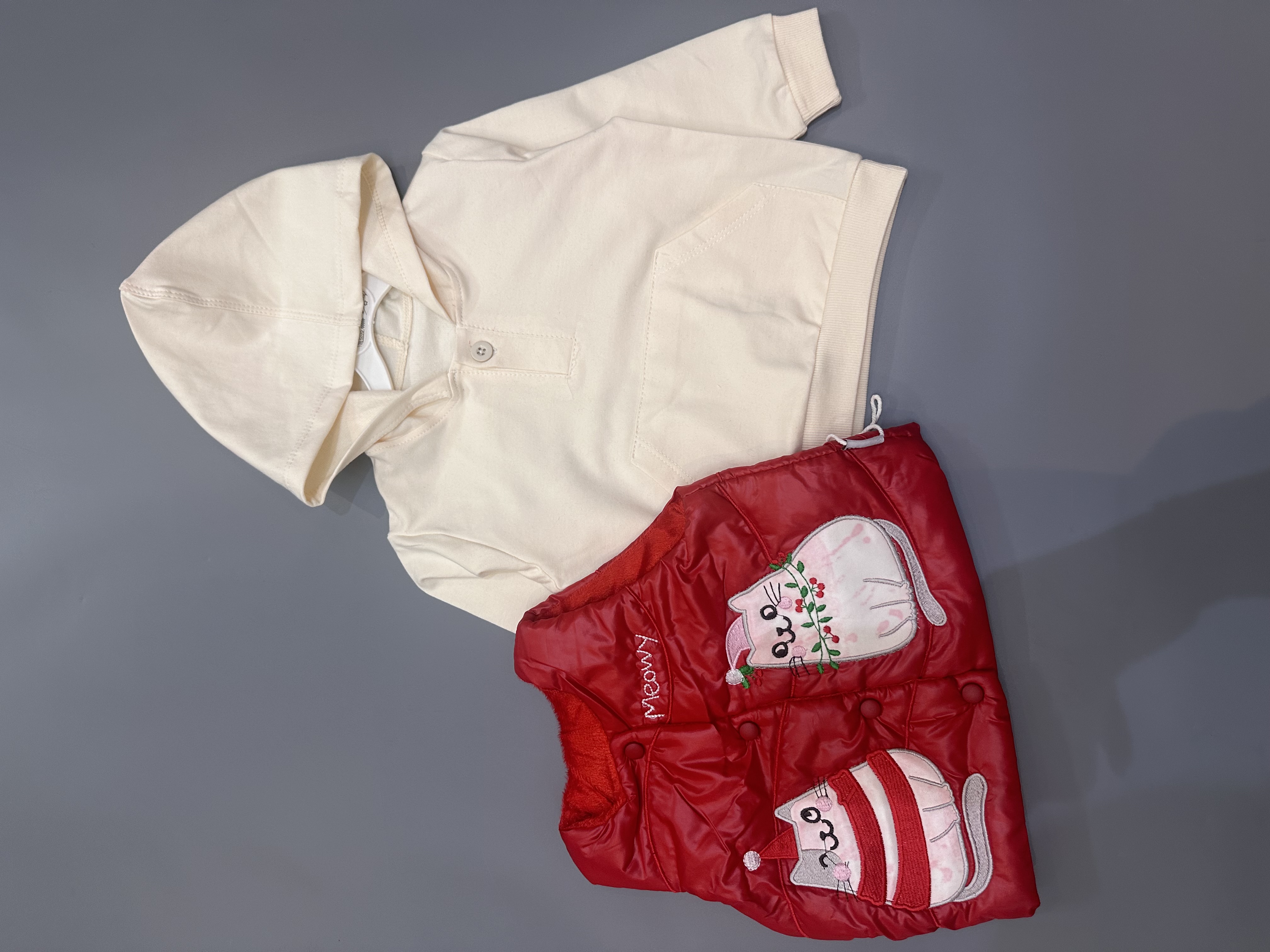ست دو تیکه از بچه ۴ ماه تا ۲ سال تقریبا سایز ۱ قد هودی ۳۰ پهنا ۲۸ قد پافر ۲۷ پهنا ۲۷ سایز ۲ قد هودی ۳۲ پهنا ۳۰ قد پافر ۳۰ پهنا ۳۰ سایز ۳ قد هودی ۳۹ پهنا ۳۴ قد پافر ۳۴ پهنا ۳۳ اندازه بزنید تعویض نداریم با تشکر