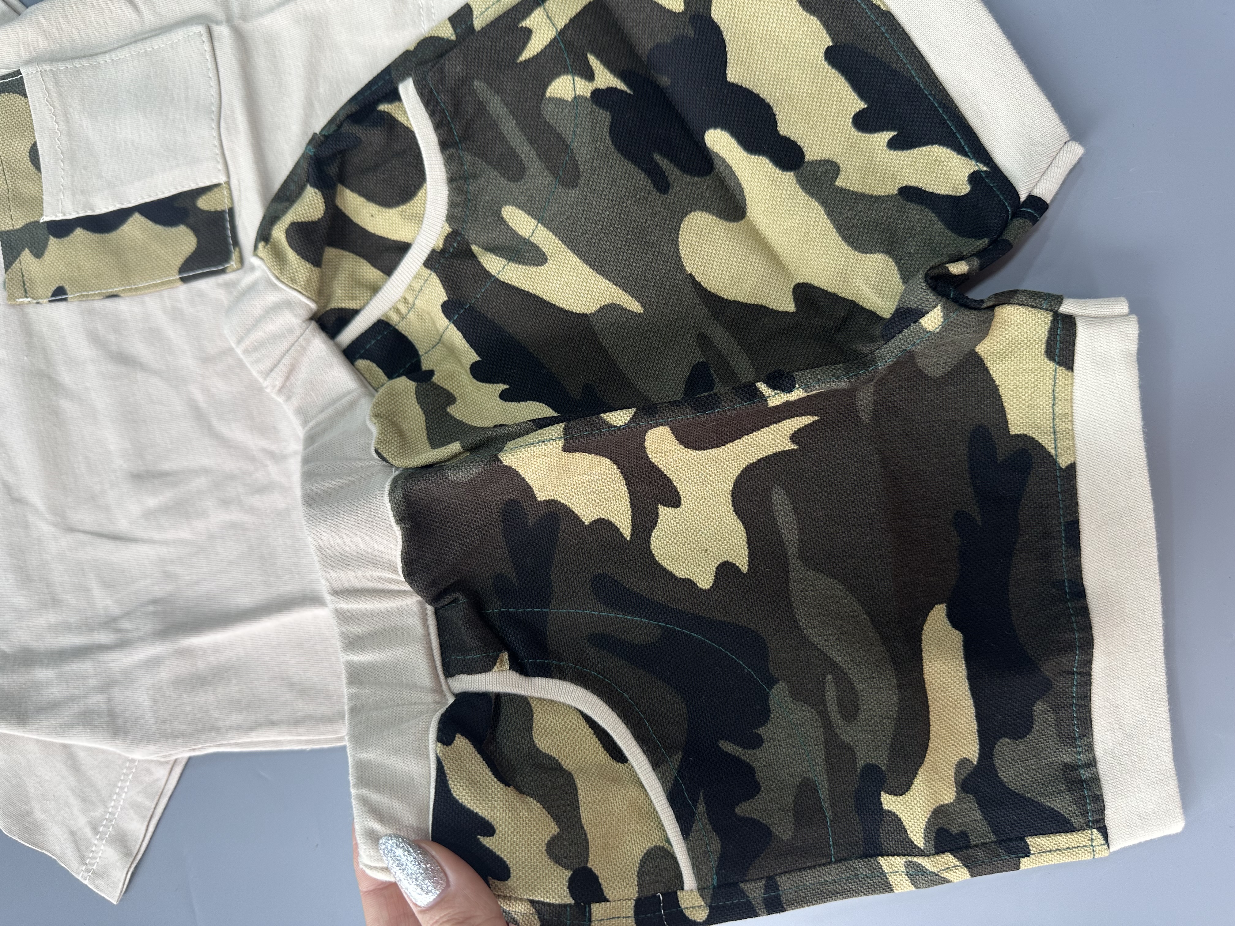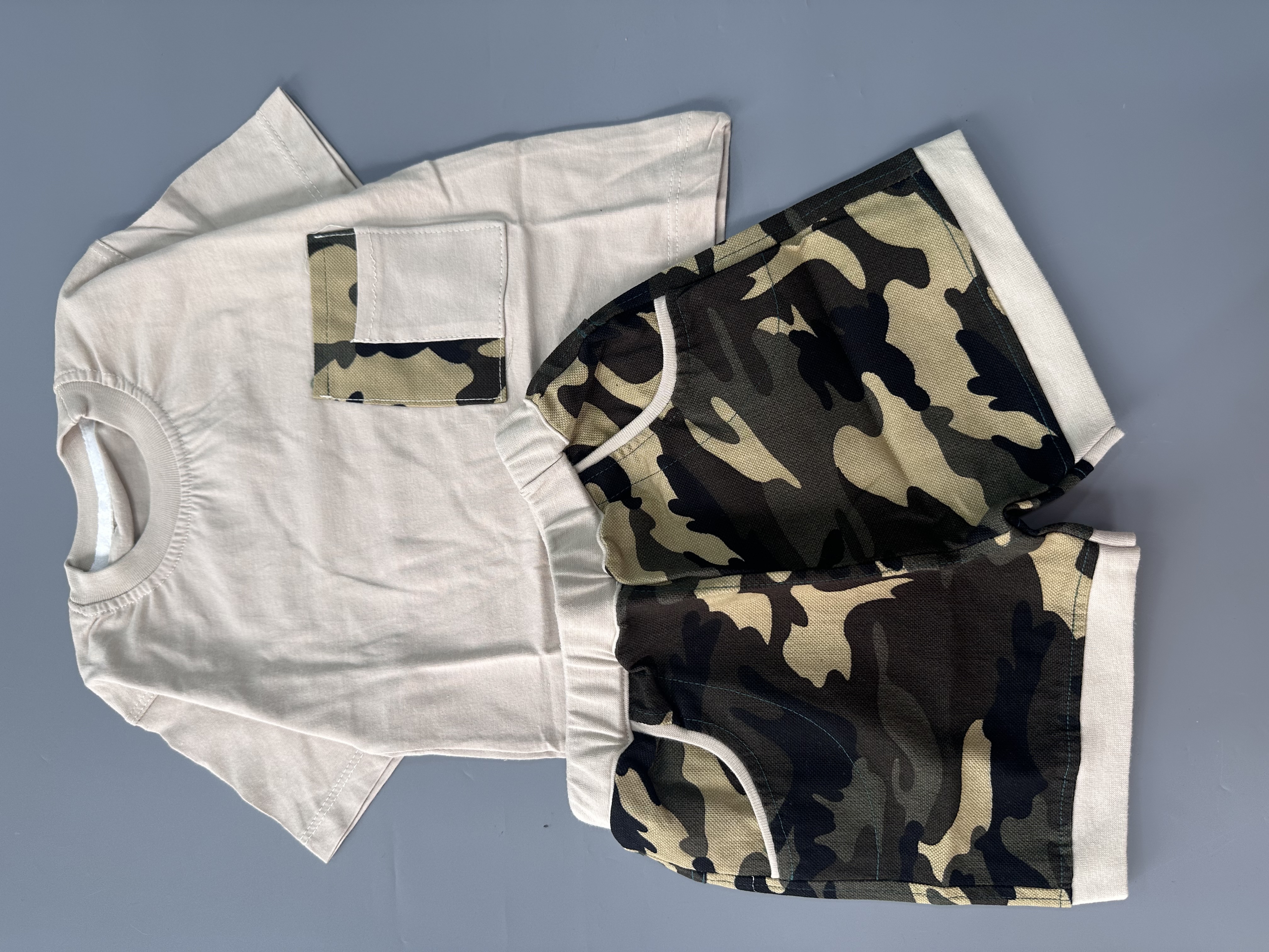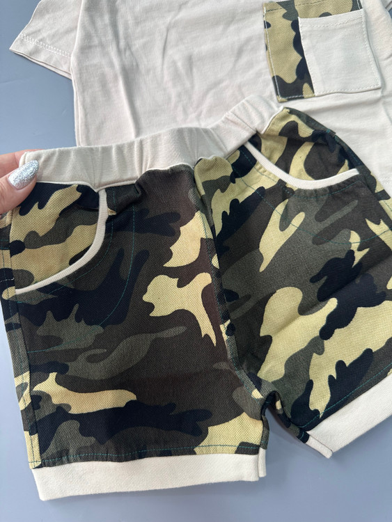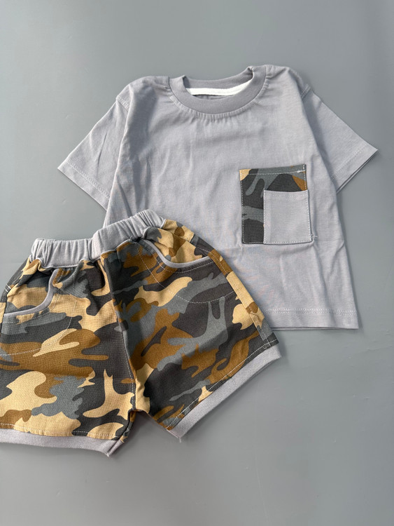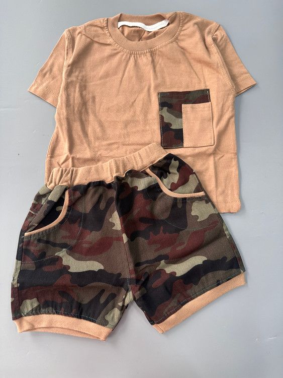 ست ارتشی جنس تیشرت نخ پنبه شلوارک لی